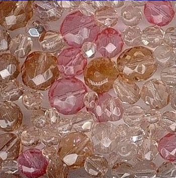 Mixy voskovaných, mačkaných, ohňových perlí s srdíček jsou laděny tvarů a barev do odstínových řad.