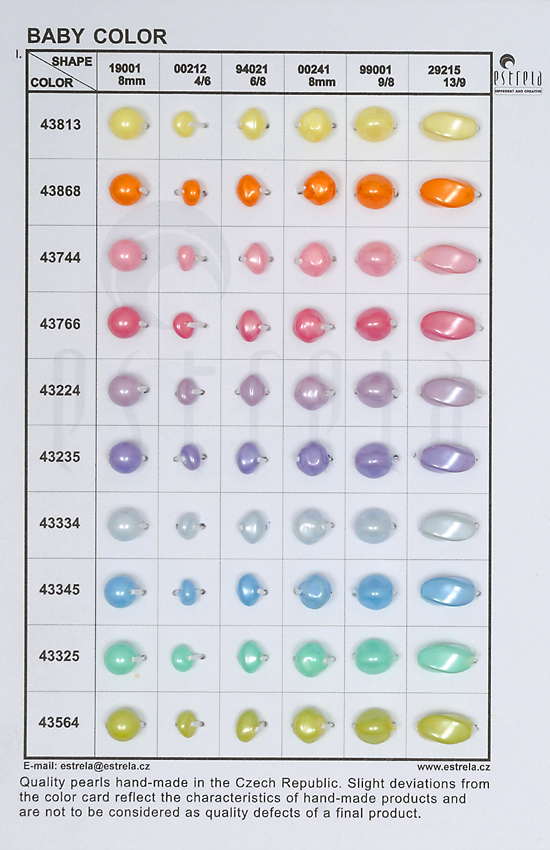 Jsou vyjímečným perlovým výrobkem. Estrella Es-Press spol. s r.o. se specializuje na povrchové zušlechtění "voskování" nejmodernější technologií laků a pigmentů,které vytváří na skleněném jádru dojem naprosté dokonalosti připomínající opticky pravou perlu.